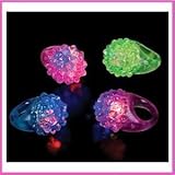These rings are great for dances, parties or costumes. Listing is for 12 rings. Rings are bumpy and flash colorfully.